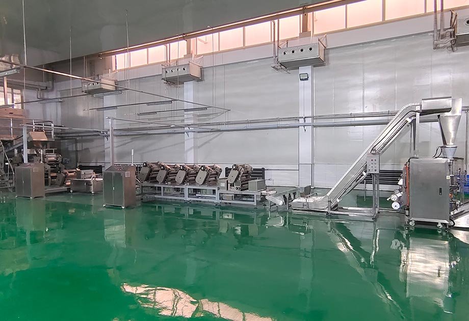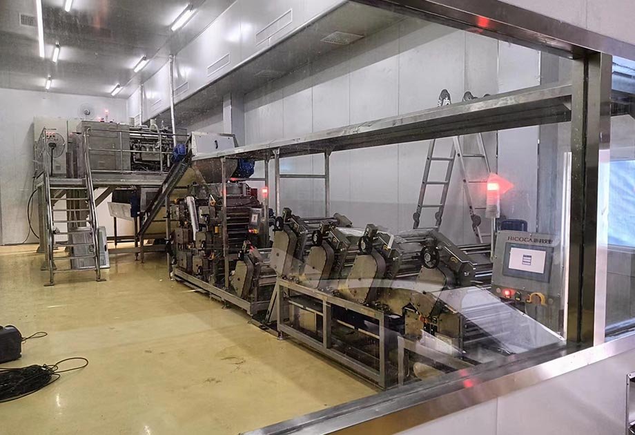 2、自動(dòng)化程度高:從和面機(jī)輸出的面絮到鮮濕面包裝完成無需人工干預(yù),全程自動(dòng)化生產(chǎn)。