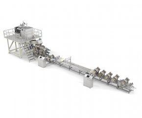 概要信息:應(yīng)用于面片和面絮多層復(fù)合鮮濕面、半干面的全自動(dòng)生產(chǎn),實(shí)現(xiàn)從真空和面、面團(tuán)熟化、片絮復(fù)合、連續(xù)壓延、卷軸熟化、切絲成型的全線全自動(dòng)化生產(chǎn)過程,并可根據(jù)需求進(jìn)行特殊規(guī)格定制。