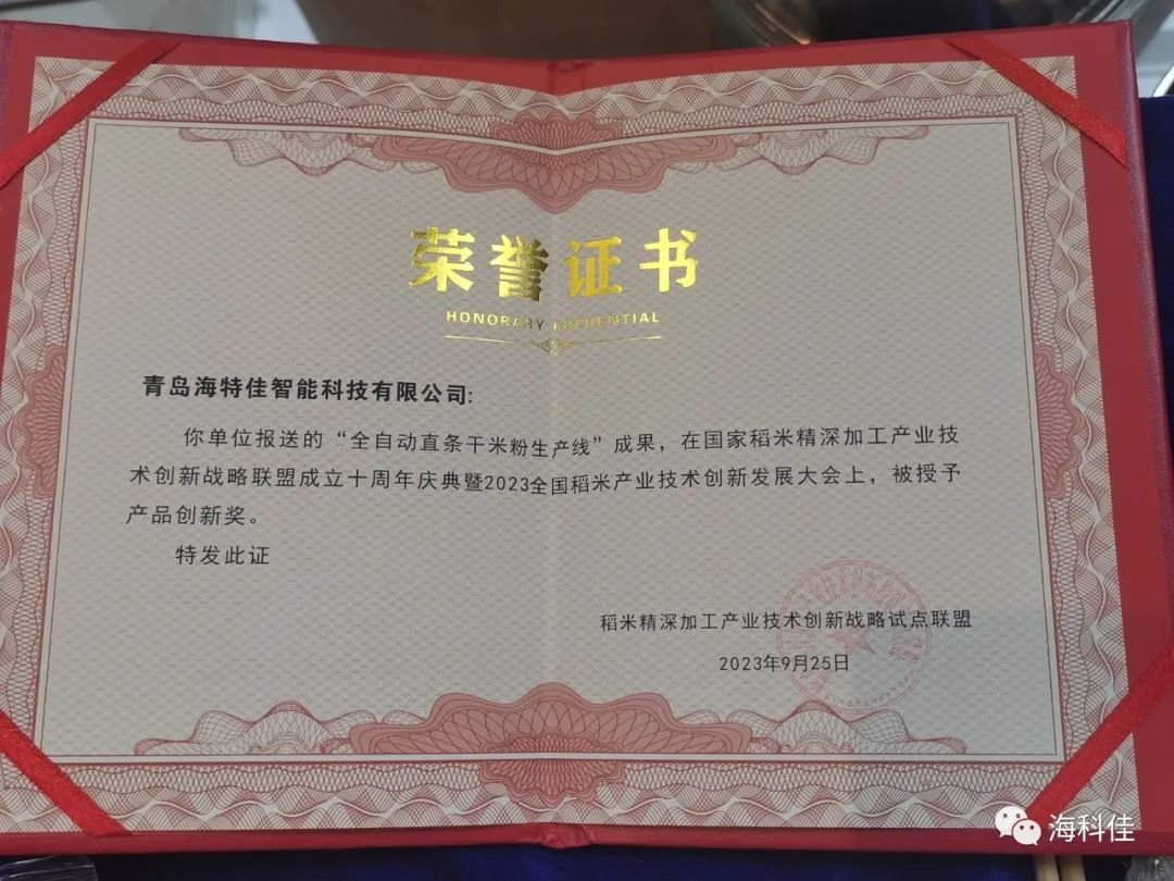 9月24日至26日,國(guó)家稻米精深加工產(chǎn)業(yè)技術(shù)創(chuàng)新戰(zhàn)略聯(lián)盟成立十周年慶典暨2023創(chuàng)新發(fā)展大會(huì)在湖北武漢舉辦。本次大會(huì)以“十年‘稻’路,創(chuàng)新未來(lái)”為主題,匯集了中國(guó)科學(xué)院院士張啟發(fā),中國(guó)工程院院士孫寶國(guó)、張洪程、胡培松等專家,以及300多位稻米全產(chǎn)業(yè)鏈的專家學(xué)者、企業(yè)代表共同出席會(huì)議,共同探討稻米精深加工產(chǎn)業(yè)技術(shù)創(chuàng)新發(fā)展。青島海科佳“全自動(dòng)直條米粉生產(chǎn)線”獲得各位專家評(píng)委的好評(píng),在本次大會(huì)上榮獲“創(chuàng)新產(chǎn)品獎(jiǎng)”,并作題為《米粉智能化裝備的發(fā)展與行業(yè)變革》的專題報(bào)告。