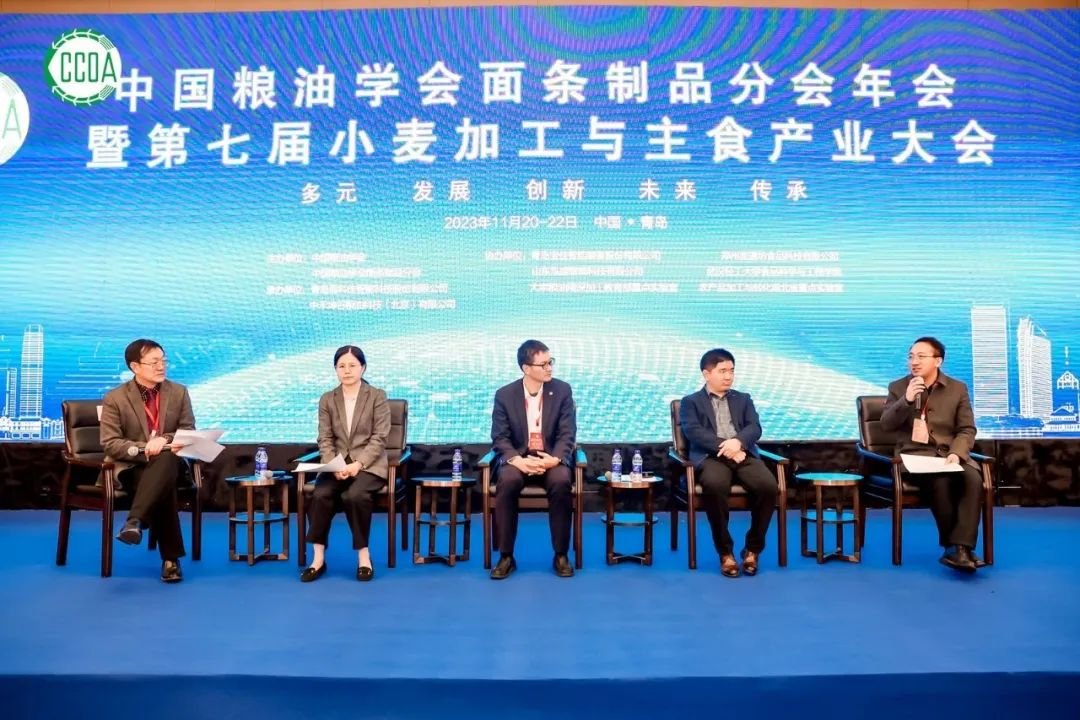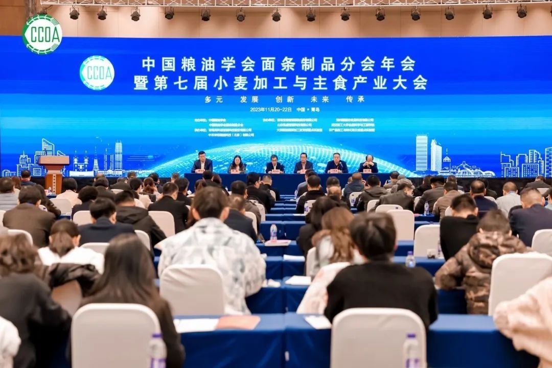 1121日,中國糧油學會面條制品分會年會暨第七屆小麥加工與主食產業(yè)大會在青島召開,本次大會由中國糧油學會面條制品分會主辦,青島??萍阎悄芸萍脊煞萦邢薰境修k,以“多元 發(fā)展 創(chuàng)新 未來 傳承”為主題,匯聚了來自全國的300余名知名專家學者,企業(yè)家、學生代表展開對話交流。
