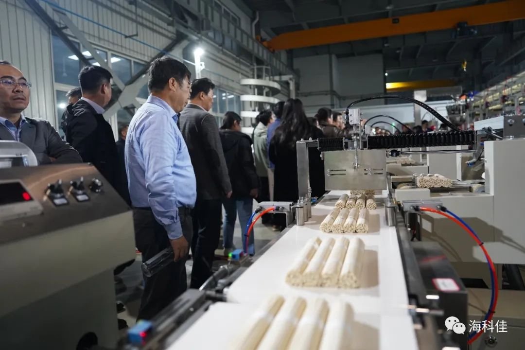 在裝配車間現(xiàn)場,海科佳手延面自動化生產線、米粉生產線、鮮濕面生產線、饅頭生產線以及食品包裝連線穩(wěn)定運行,讓大家切實感受到了現(xiàn)代化米粉制品生產裝備的先進創(chuàng)新性。
