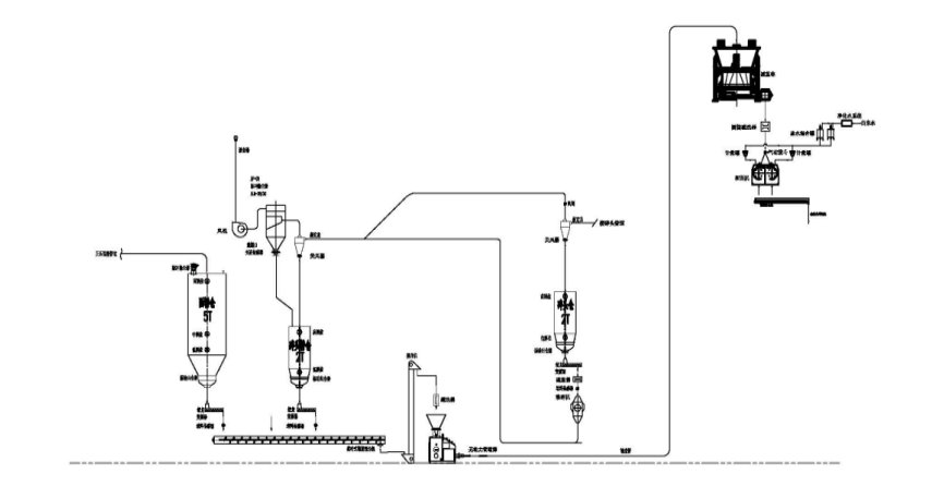 通過正壓輸送管道從面粉廠粉罐區(qū)域輸送至掛面面粉倉內(nèi)。車間配備1套5噸噸容量的面粉倉,用于暫存面粉。車間配備1個(gè)2噸容量的碎頭粉倉及1個(gè)2噸碎頭倉,各倉底部設(shè)置氣錘和絞龍,通過絞龍的轉(zhuǎn)動(dòng)頻率控制供粉的流量(絞龍調(diào)試時(shí)需進(jìn)行標(biāo)定);所有絞龍匯集至1臺(tái)槳葉式混合絞龍內(nèi),在物料的輸送過程中實(shí)現(xiàn)混合?;旌虾蟮奈锪辖?jīng)過提升機(jī),輸送至粉體壓松機(jī)進(jìn)入減重稱,然后至和面鍋內(nèi)備用。