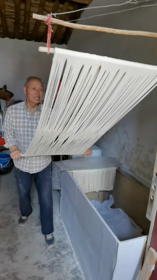 傳統(tǒng)手工掛面在我國已有1500多年的歷史,不同地域都有不同的名稱和叫法,如新疆拉條子、陜西空心面、福建線面、藁城宮面、中江手工掛面等等。它們以優(yōu)質(zhì)小麥為原料,經(jīng)過和面、壓面、盤盆、醒發(fā)、搓條、粗拉、細拉、繞桿、拉伸、烘干等十八道工序制作而成,工藝繁瑣、復雜。制面人傳承千百年的傳統(tǒng)技術精心制作,在整個制面過程中對“手法和技巧”有很高的要求。手工面口感爽滑軟彈、營養(yǎng)健康,屬干掛面中的“天花板”。