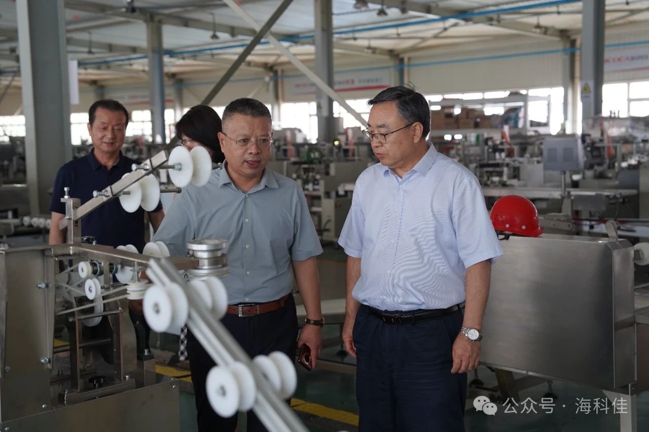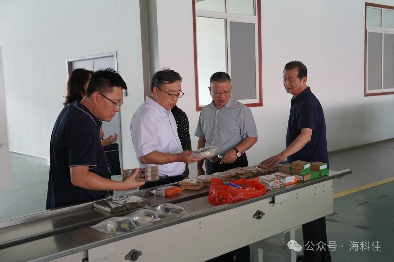 ??萍讯麻L(zhǎng)徐龍朝熱情接待盧理事長(zhǎng)一行,并介紹了??萍旬a(chǎn)業(yè)版塊、研發(fā)創(chuàng)新、企業(yè)管理等方面的發(fā)展情況。在米面制品實(shí)驗(yàn)室,向客人介紹了??萍雅c各專業(yè)院校進(jìn)行的米面制品工藝與裝備融合方面所做的工作。在車間現(xiàn)場(chǎng),盧景波理事長(zhǎng)詳細(xì)詢問了手工掛面自動(dòng)化裝備的研發(fā)過程與市場(chǎng)應(yīng)用,對(duì)應(yīng)用于手工掛面、鮮濕面生產(chǎn)的“漸縮壓延”、“片絮復(fù)合”等創(chuàng)新技術(shù)表示贊嘆。盧理事長(zhǎng)指出,??萍讯嗄陙?lái)以市場(chǎng)需求為導(dǎo)向的創(chuàng)新發(fā)展主線,是長(zhǎng)期立足于市場(chǎng)前沿的重要基礎(chǔ),切實(shí)為行業(yè)的進(jìn)步作出了積極貢獻(xiàn)。希望海科佳繼續(xù)以技術(shù)創(chuàng)新為前進(jìn)動(dòng)力,持續(xù)不斷地為行業(yè)輸入新產(chǎn)品、新技術(shù)、新理念。